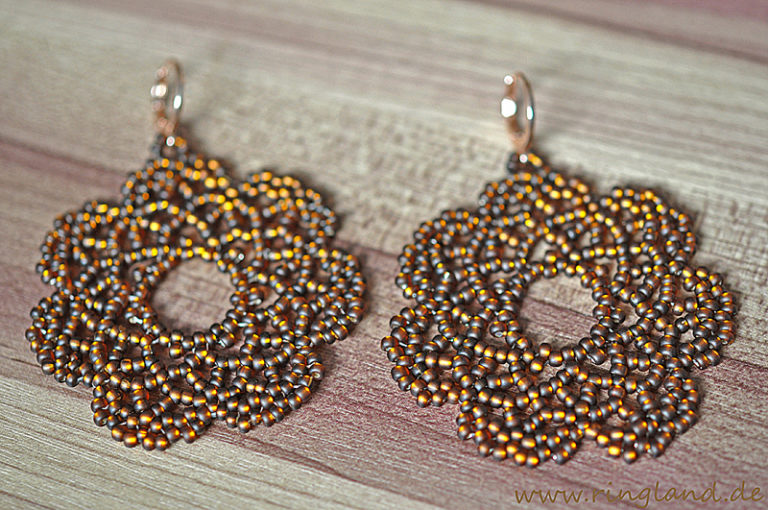 Ohrringe NOISETTE schmücken in strahlenden Brauntönen von hellem Gold- bis hin zu warmem Moccabraun und passen bestens zum derzeit wieder hochaktuellen Bohème Stil. Wunderschöne Ohrringe, tragbar zu jeder Tageszeit und jedem Anlass und besonders schön zum Pferdeschwanz und zu kurzen oder hochgesteckten Haaren.