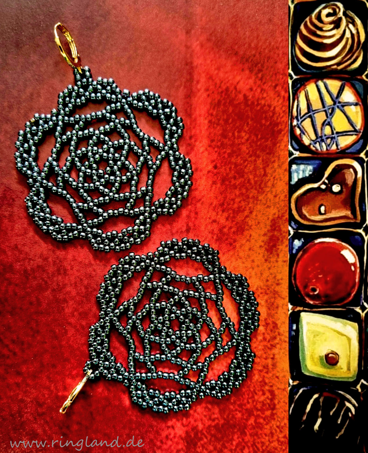Die Ohrringe SCHWARZE ROSEN schmücken Sie in glänzendem Schwarz und passen bestens zum immer wieder hochaktuellen Bohème Stil. Wunderschöne Ohrringe, die den Blick in Rosenblütn erahnen lassen. Sie sind tragbar zu jeder Tages- und Nachtzeit und zu jedem Anlass und besonders schön zum Pferdeschwanz und zu kurzen oder hochgesteckten Haaren, aber nicht nur!!